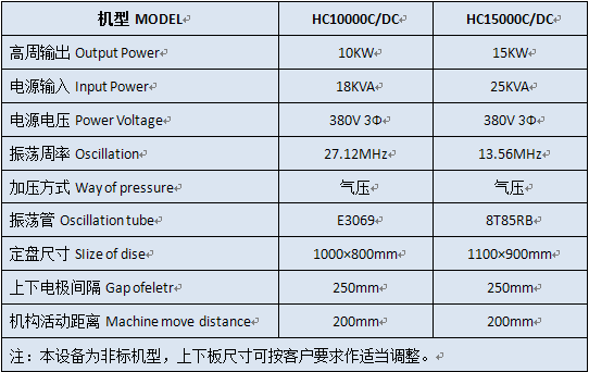 9、功率输出范围有10KW、15KW和25KW,客户可根据产品尺寸大小来确定机器功率,此系列设备为非标机型,按客户要求定制。