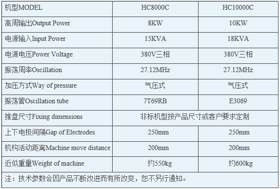 8、 功率输出范围有8KW、10KW和15KW,客户可根据产品尺寸大小来确定机器功率,此系列设备为非标机型,按客户要求定制。