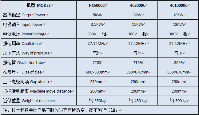 1、本系列设备有多种名称,根据大家的习惯通常可称为:高周波塑胶熔接机、高周波吸塑包装机、高周波泡壳包装机、高频热合机、高周波封口机、高周波塑料热合机。