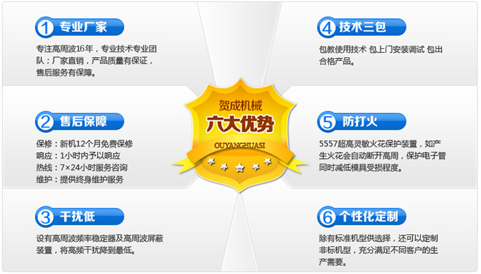 ● 功率输出范围有5KW、8KW和10KW,客户可根据产品尺寸大小来确定机器功率。